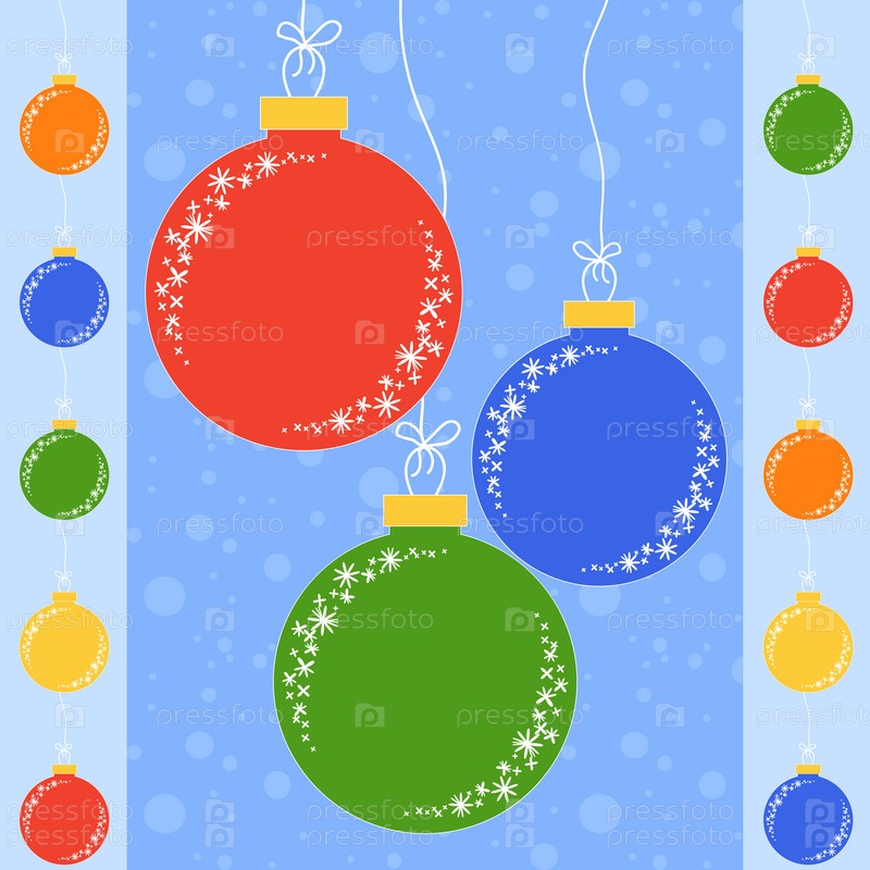 Набор плоских цветных изолированных елочных игрушек шары на веревках. Простой стиль