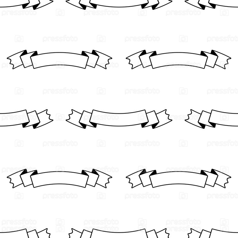 Бесшовный узор из плоских белых изогнутых лент баннеров с черной обводкой. На белом фоне