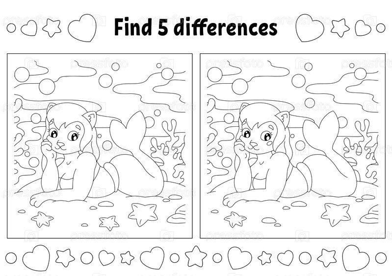 Найдите пять отличий. Раскраска для детей. Лист с заданиями для детей. Векторная иллюстрация на белом фоне