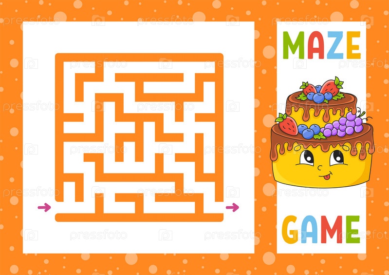 Квадратный лабиринт. Игра для детей. Головоломка для детей. Счастливый персонаж. Головоломка лабиринта. Цветная векторная иллюстрация. Найдите правильный путь. Изолированная векторная иллюстрация. Мультяшный стиль