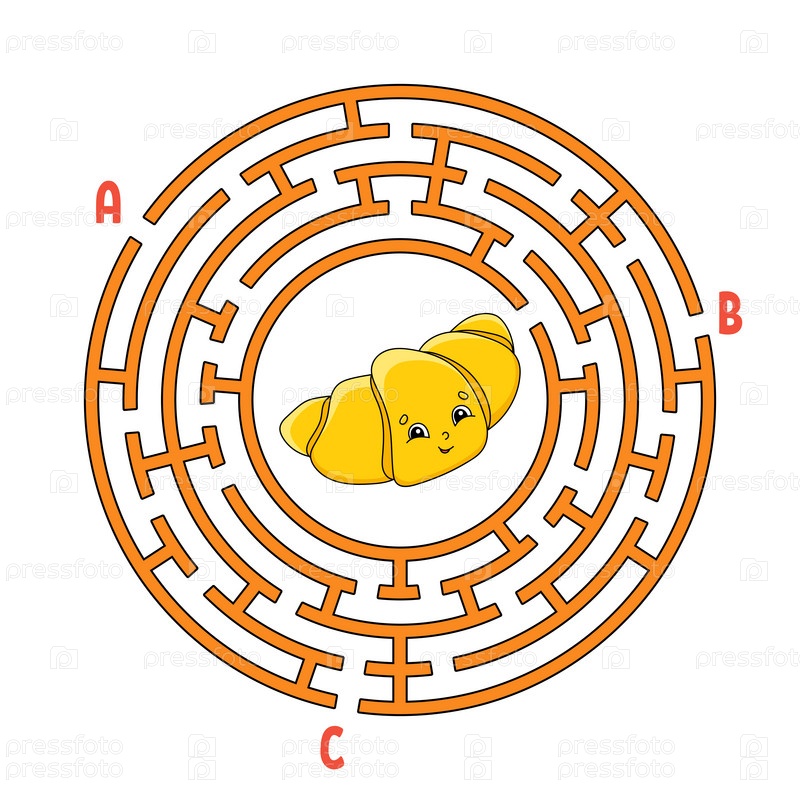 Круговой лабиринт. Игра для детей. Головоломка для детей. Круглая головоломка лабиринта. Найдите правильный путь. Рабочий лист по образованию. Векторная иллюстрация