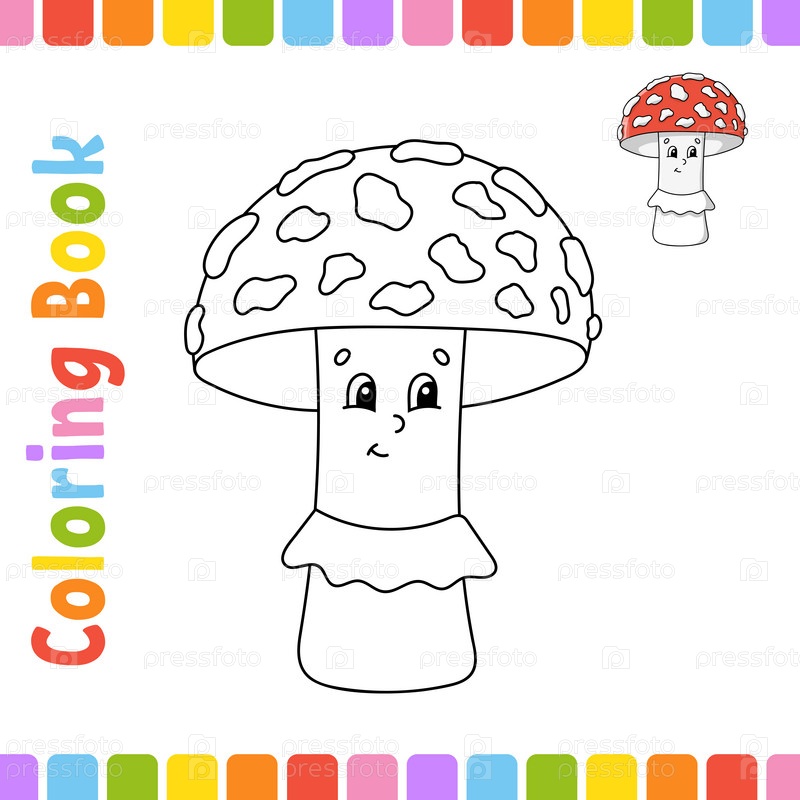 Раскраска для детей. Веселый персонаж. Милый мультяшный стиль. Фэнтезийная страница для детей. Черный контурный силуэт. Изолирован на белом фоне. Векторная иллюстрация