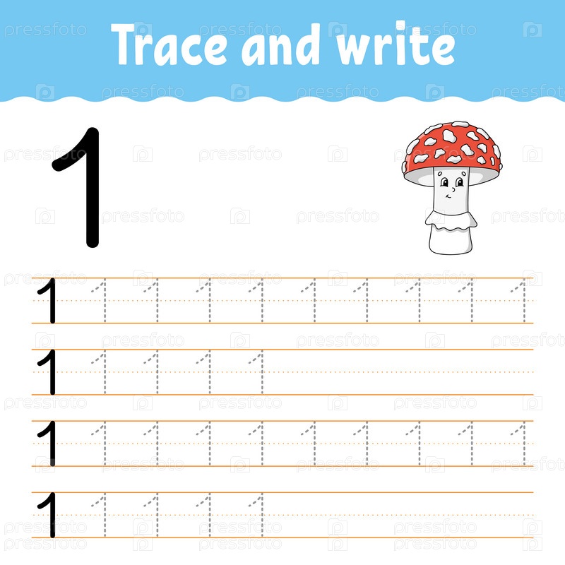 Изучаем цифры. Обводим и пишем. Практика письма. Изучаем цифры для детей. Образовательный развивающий рабочий лист. Цветная страница с заданиями. Векторная иллюстрация