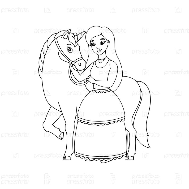 Волшебный фея единорог. Страница раскраски для детей. Персонаж в мультяшном стиле. Векторная иллюстрация на белом фоне