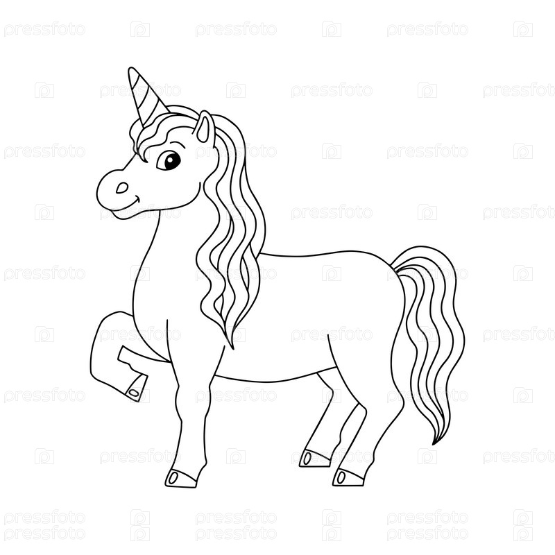 Волшебный фея единорог. Милая лошадь. Страница раскраски для детей. Персонаж в мультяшном стиле. Векторная иллюстрация на белом фоне