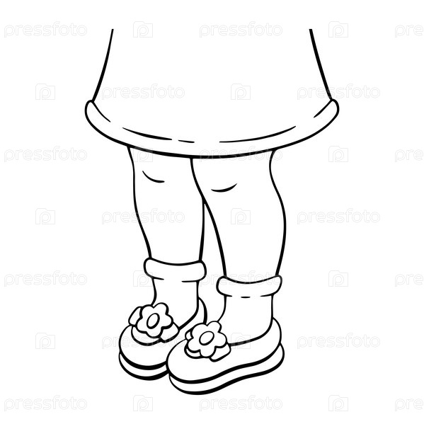 Ноги девушки.. Цифровой штамп. Персонаж в мультяшном стиле. Векторная иллюстрация на белом фоне