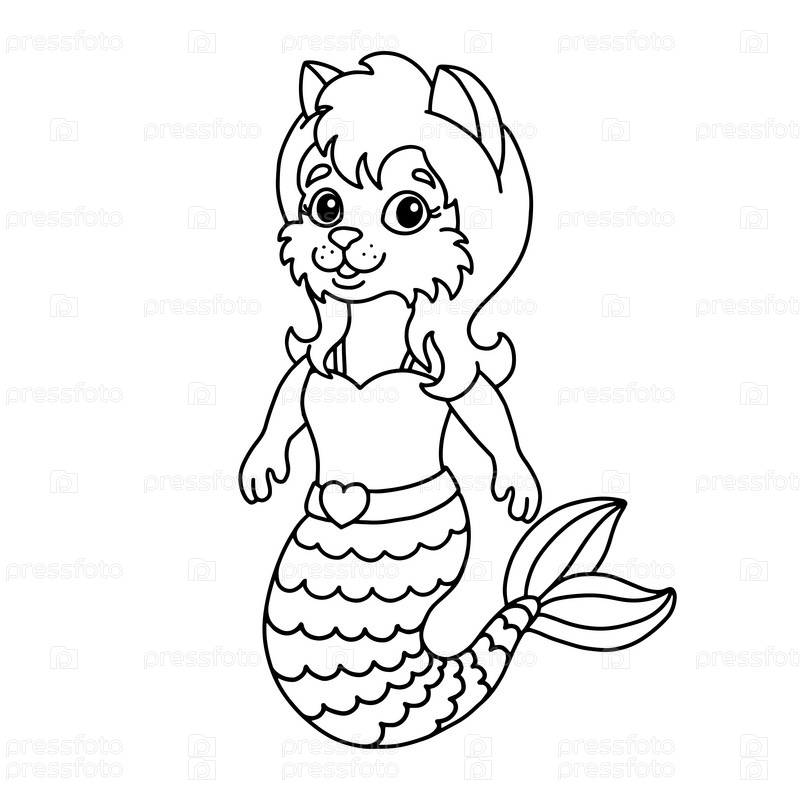 Милая русалочка. Раскраска для детей. Мультяшный стиль. Векторная иллюстрация на белом фоне