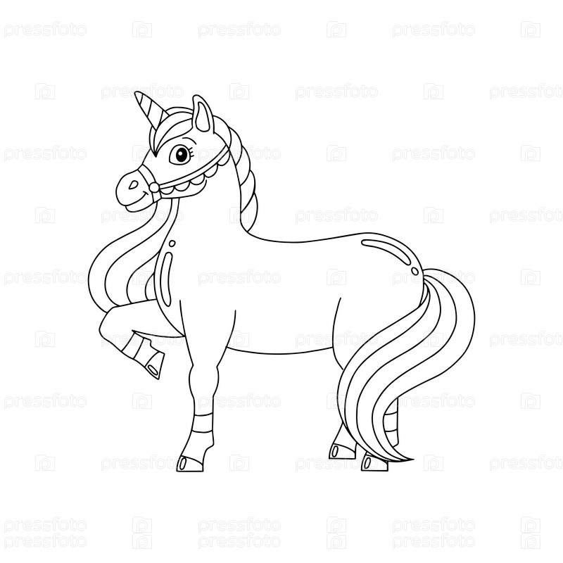 Волшебный фея единорог. Страница раскраски для детей. Персонаж в мультяшном стиле. Векторная иллюстрация на белом фоне