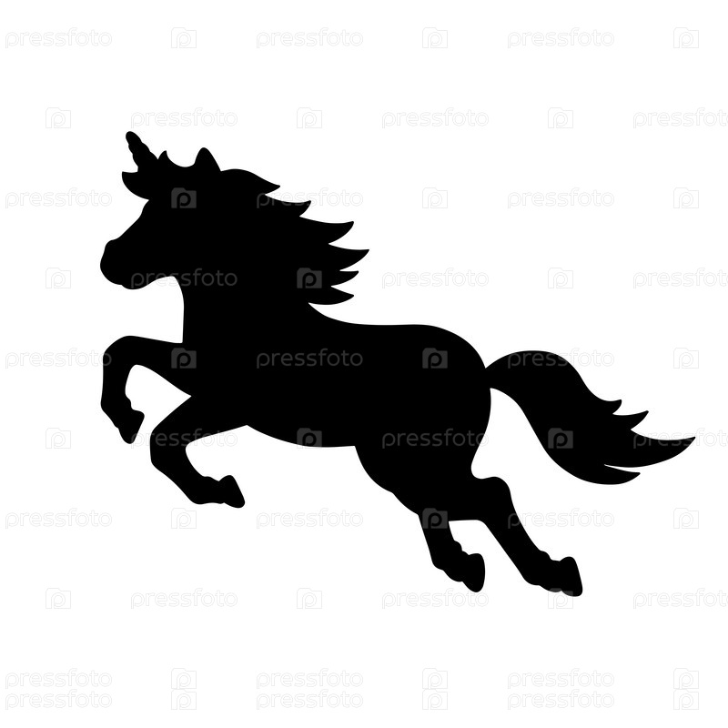 Волшебный единорог. Сказочная лошадь. Черный силуэт. Элемент дизайна. Векторная иллюстрация, изолированная на белом фоне. Шаблон для книг, наклеек, плакатов, открыток, одежды