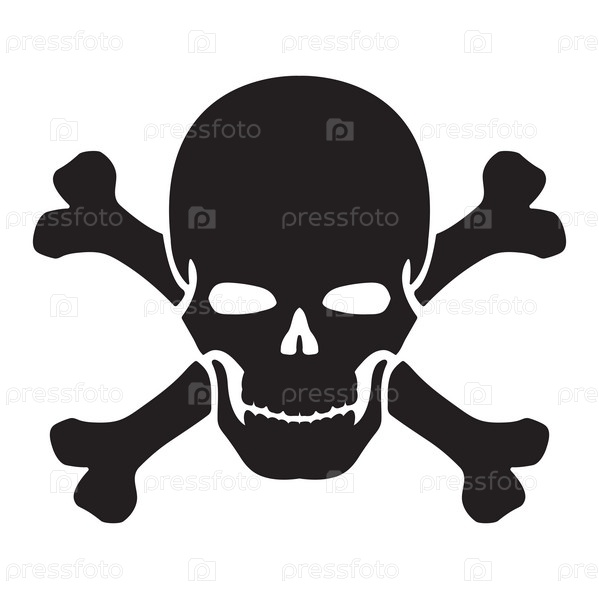 Черный силуэт черепа. Элемент дизайна. Векторная иллюстрация изолирована на белом фоне. Шаблон для книг, наклеек, плакатов, карт, одежды