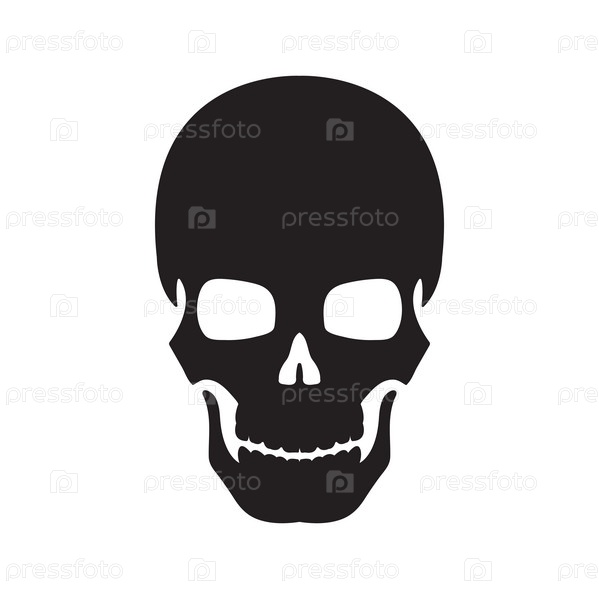 Черный силуэт черепа. Элемент дизайна. Векторная иллюстрация изолирована на белом фоне. Шаблон для книг, наклеек, плакатов, карт, одежды