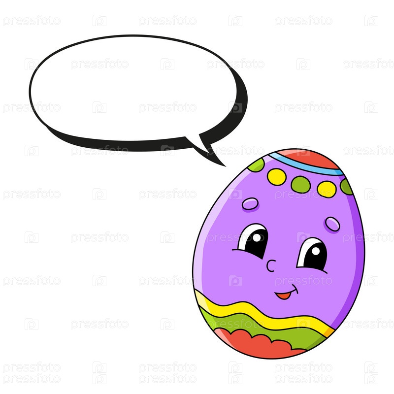 Речевой пузырь разной формы. С милым мультяшным персонажем. Нарисованный от руки. Пасхальная тема. Мыслящие шары. Векторная иллюстрация, изолированная на белом фоне. Стиль каракули