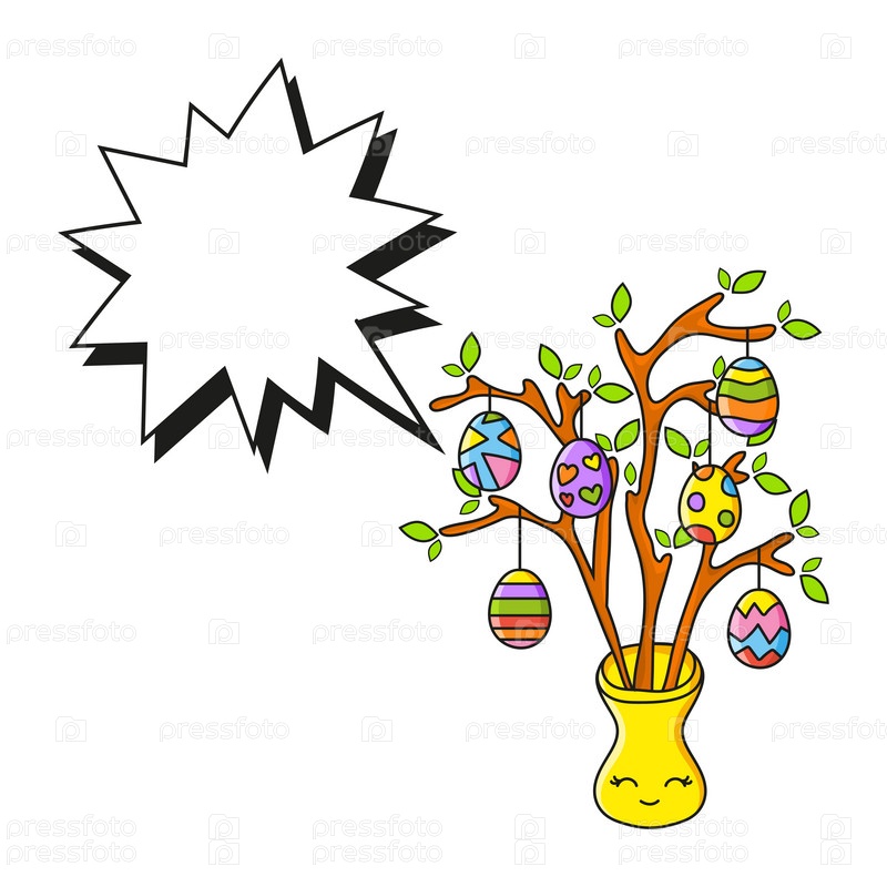 Речевой пузырь разной формы. С милым мультяшным персонажем. Нарисованный от руки. Пасхальная тема. Мыслящие шары. Векторная иллюстрация, изолированная на белом фоне. Стиль каракули