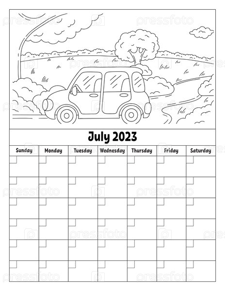 Пустой шаблон календаря на один месяц без дат. Красочный дизайн с милым персонажем. Векторная иллюстрация