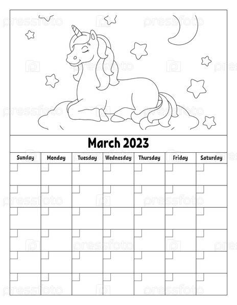 Пустой шаблон календаря на один месяц без дат. Красочный дизайн с милым персонажем. Векторная иллюстрация