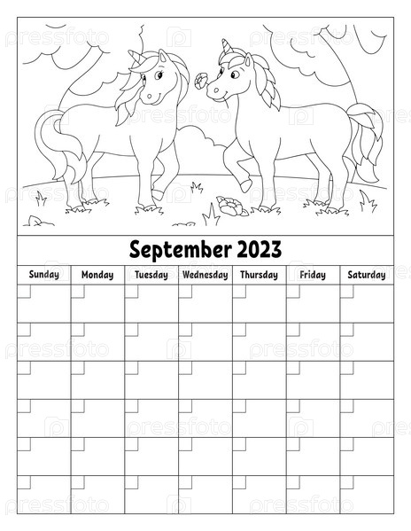 Пустой шаблон календаря на один месяц без дат. Красочный дизайн с милым персонажем. Векторная иллюстрация