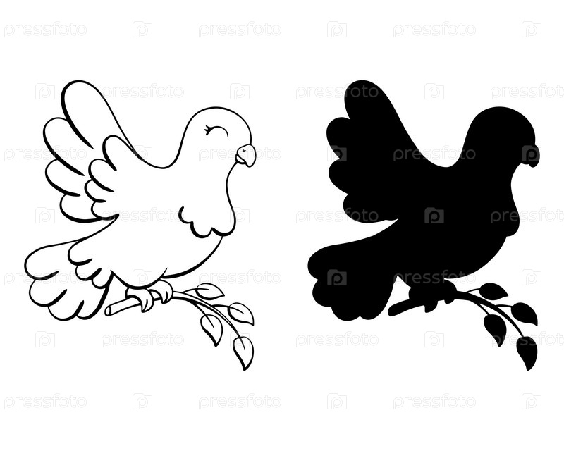 Черный силуэт голубя. Элемент дизайна. Векторная иллюстрация, изолированная на белом фоне. Шаблон для книг, наклеек, плакатов, открыток, одежды