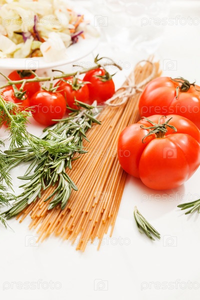 Макароны с помидорами и зеленью