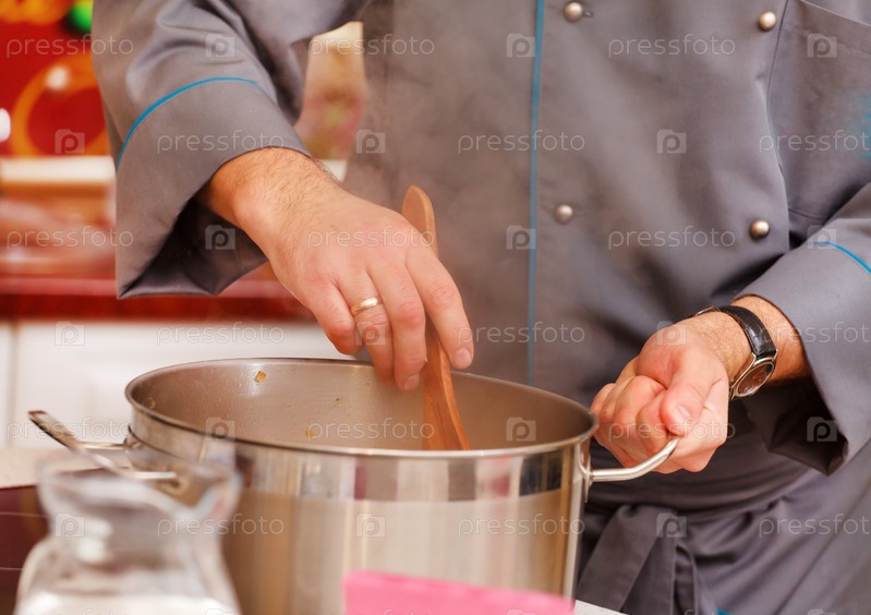Шеф-повар готовит пищу