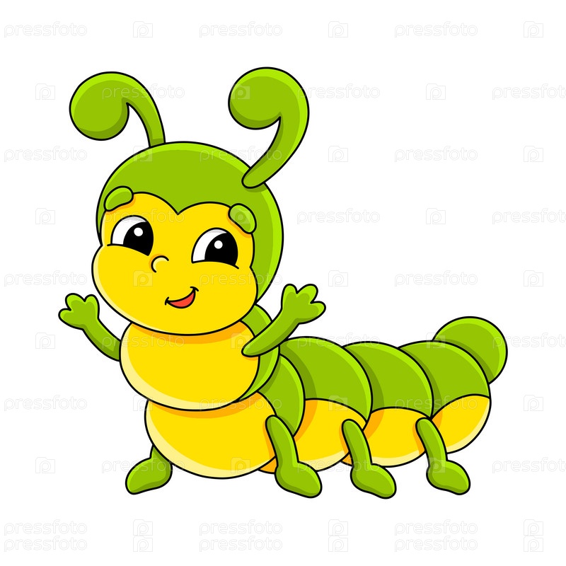 Мультяшный персонаж гусеница. Изолированный на белом фоне. Элемент дизайна. Шаблон для вашего дизайна, книги, наклейки, открытки. Векторная иллюстрация