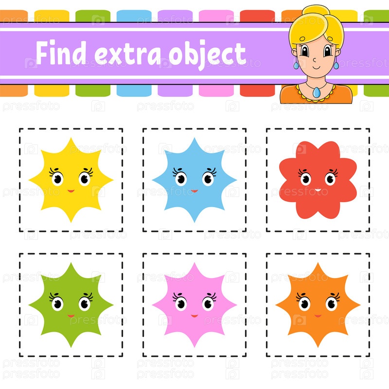 Найти дополнительный объект. Образовательный рабочий лист для детей и малышей. Игра для детей. Милые персонажи. Простая плоская цветная изолированная векторная иллюстрация в мультяшном стиле