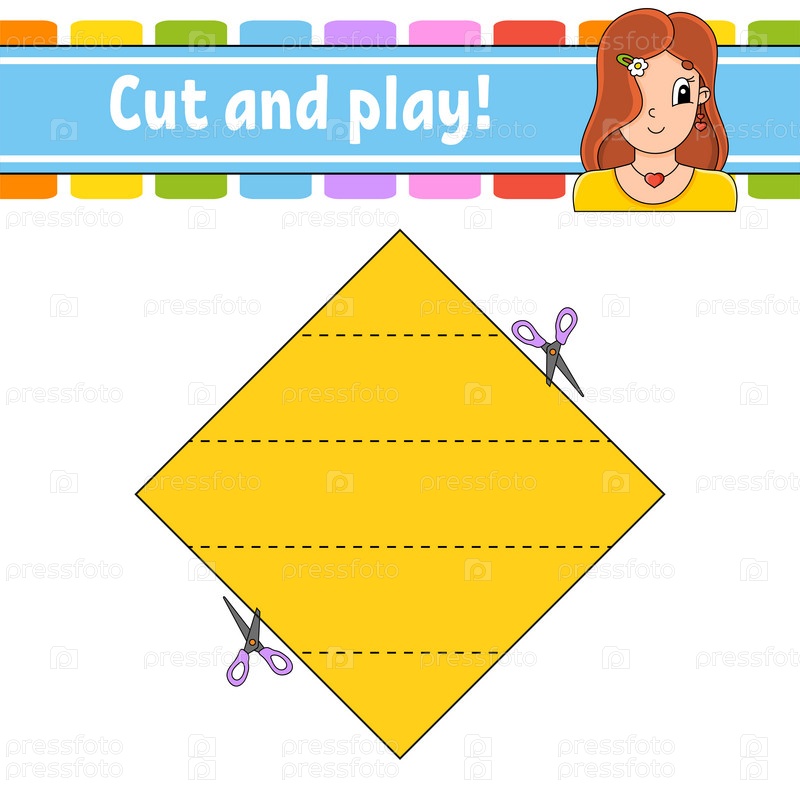 Разрезай и играй. Логическая головоломка для детей. Образовательный развивающий рабочий лист. Обучающая игра. Страница с заданиями. Практика резки для дошкольников. Простая плоская изолированная векторная иллюстрация в милом мультяшном стиле