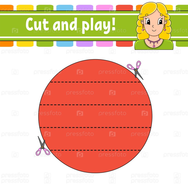 Разрезай и играй. Логическая головоломка для детей. Образовательный развивающий рабочий лист. Обучающая игра. Страница с заданиями. Практика резки для дошкольников. Простая плоская изолированная векторная иллюстрация в милом мультяшном стиле