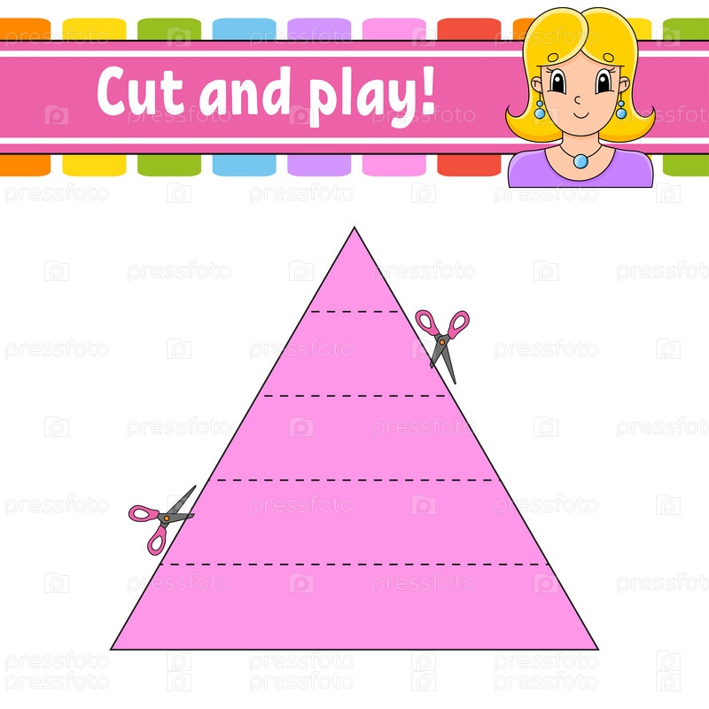 Разрезай и играй. Логическая головоломка для детей. Образовательный развивающий рабочий лист. Обучающая игра. Страница с заданиями. Практика резки для дошкольников. Простая плоская изолированная векторная иллюстрация в милом мультяшном стиле