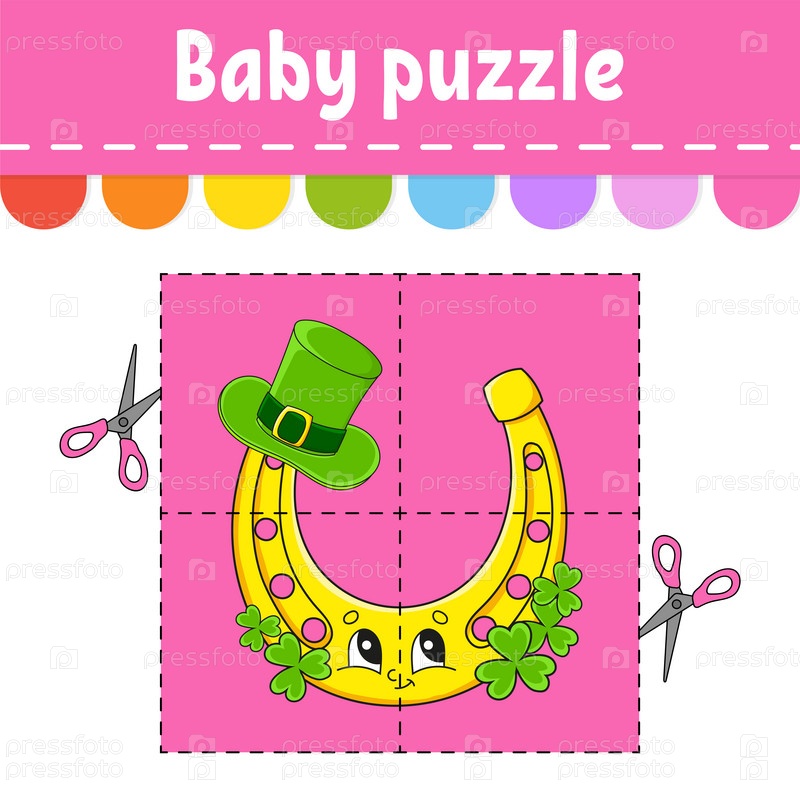 Детская головоломка. Легкий уровень. Флэш-карточки. Разрезай и играй. Рабочий лист с заданиями по цвету. Игра для детей. Персонаж мультфильма. Векторная иллюстрация