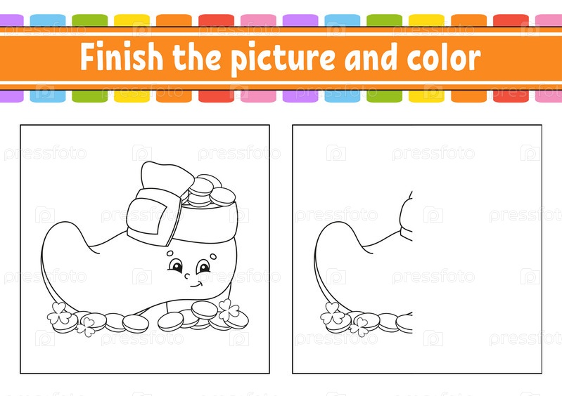Закончите рисунок и раскрасьте. Персонаж мультфильма, изолированный на белом фоне. Для образования детей. Рабочий лист. Векторная иллюстрация