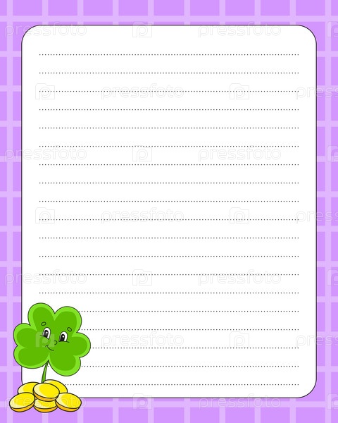 Шаблон линованного листа. Бумага для письма. Для дневника, контрольного списка, планировщика, списка желаний. Векторная иллюстрация