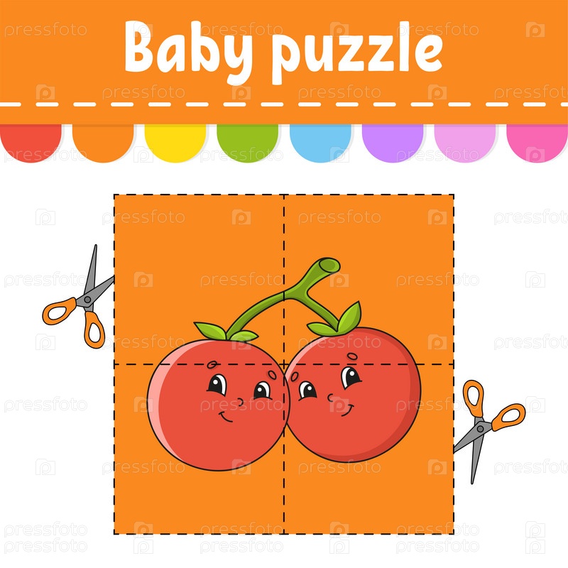 Детская головоломка. Легкий уровень. Флэш-карточки. Разрезай и играй. Рабочий лист с заданиями по цвету. Игра для детей. Персонаж мультфильма