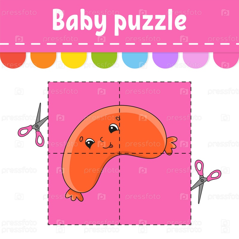 Детская головоломка. Легкий уровень. Флэш-карточки. Разрезай и играй. Рабочий лист с заданиями по цвету. Игра для детей. Персонаж мультфильма