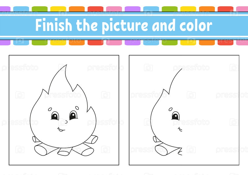 Закончите рисунок и раскрасьте. Персонаж мультфильма, изолированный на белом фоне. Для образования детей. Рабочий лист с заданиями