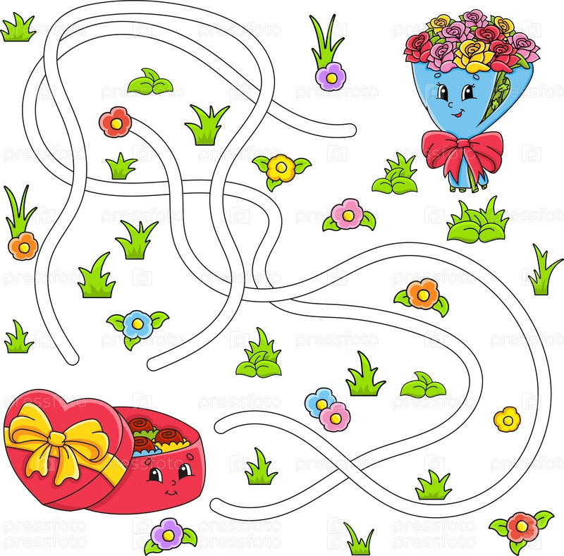 Забавный лабиринт для детей. Головоломка для детей. Персонаж мультфильма. Головоломка лабиринта. Цветная векторная иллюстрация. Найдите правильный путь. День святого Валентина