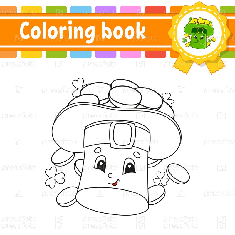 Раскраска для детей. Веселый персонаж. Милый мультяшный стиль. Черный контурный силуэт. Изолирован на белом фоне. Векторная иллюстрация