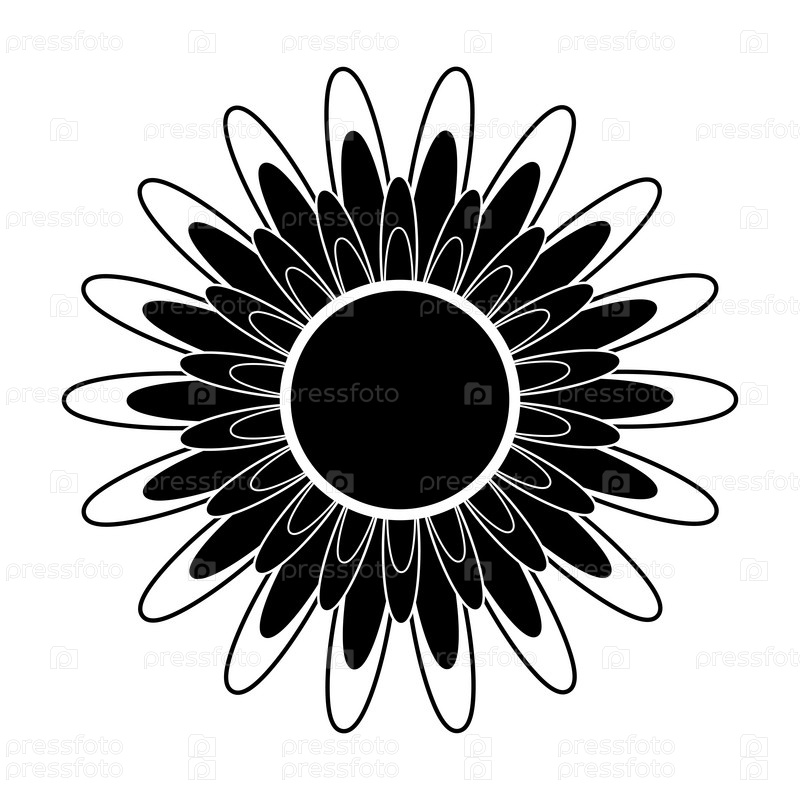 Черно-белый силуэт цветка в абстрактном стиле
