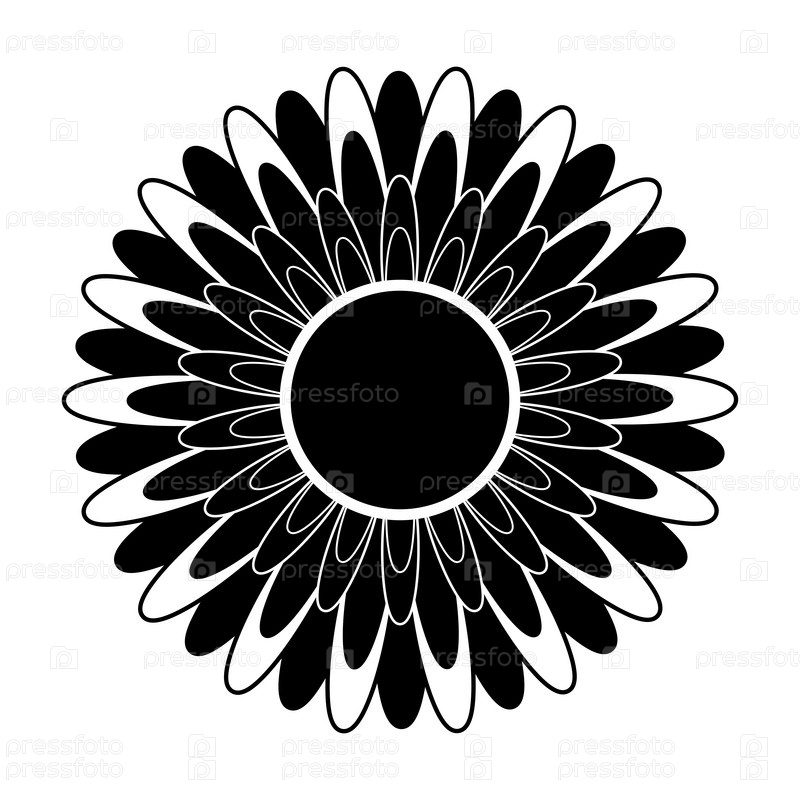 Черно-белый силуэт цветка в абстрактном стиле
