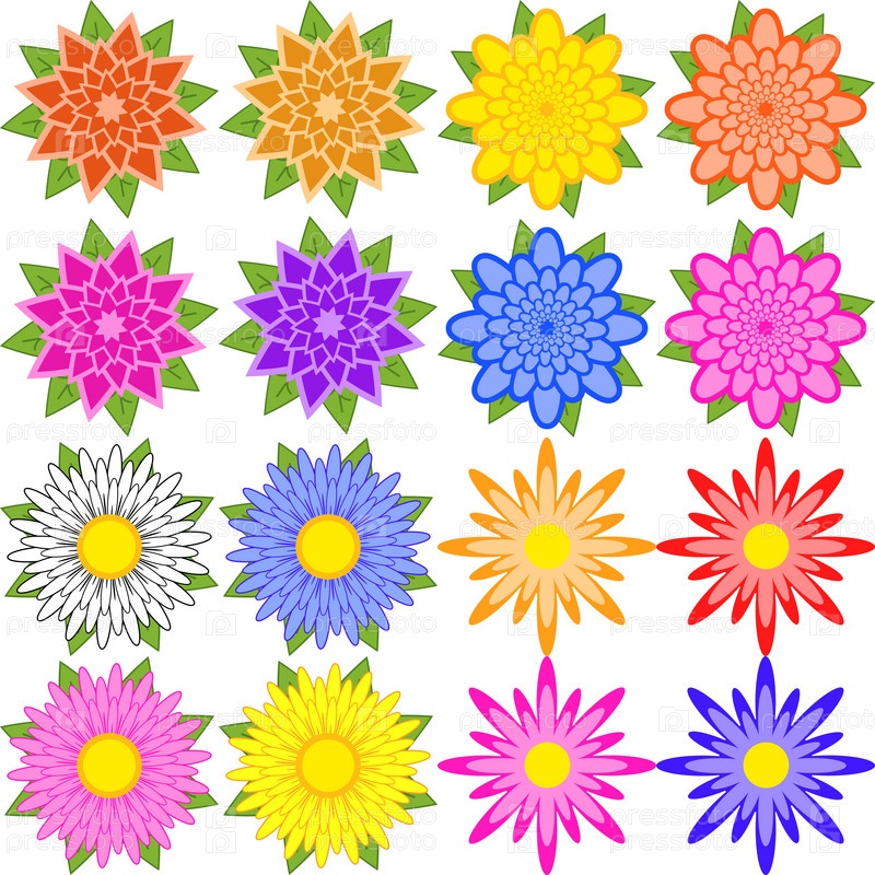 Набор цветов синего, красного, желтого, белого, розового, оранжевого, фиолетового цветов