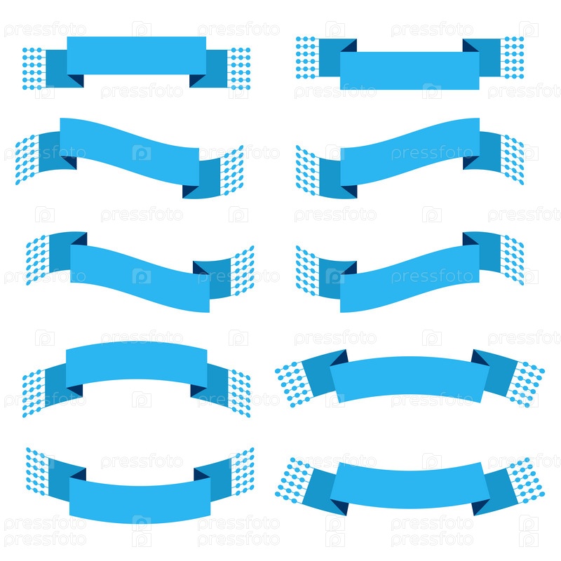 Набор из 10 плоских синих изолированных ленточных баннеров. Подходит для дизайна