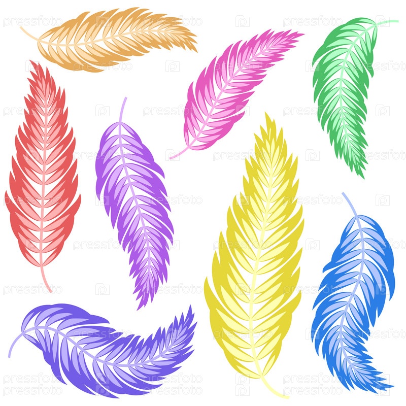 Набор плоских абстрактных красочных изолированных листьев, изгибающихся в разных направлениях