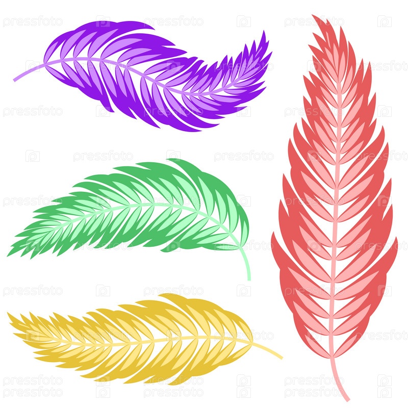 Набор плоских изолированных абстрактных цветных силуэтов листьев, изгибающихся в разных направлениях на белом фоне