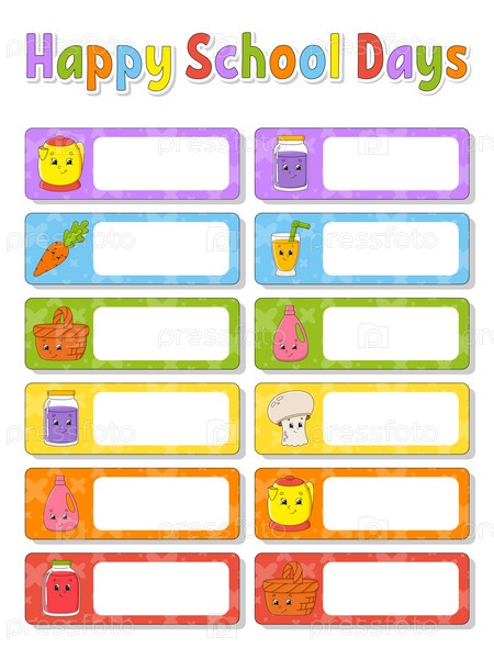 Яркие наклейки. Прямоугольная этикетка. Цветная векторная изолированная иллюстрация