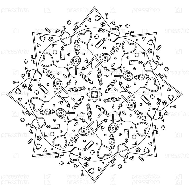Абстрактная мандала. Раскраска для детей и взрослых. Векторная иллюстрация на белом фоне