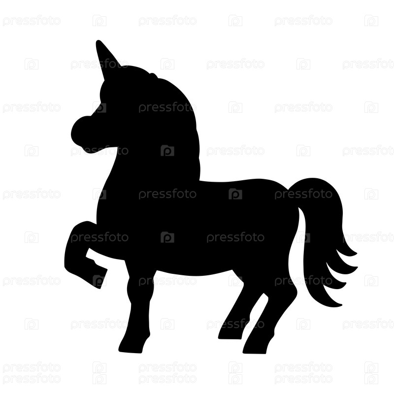 Волшебный фея единорог. Милая лошадь. Черный силуэт. Элемент дизайна. Векторная иллюстрация, изолированная на белом фоне. Шаблон для книг, наклеек, плакатов, открыток, одежды