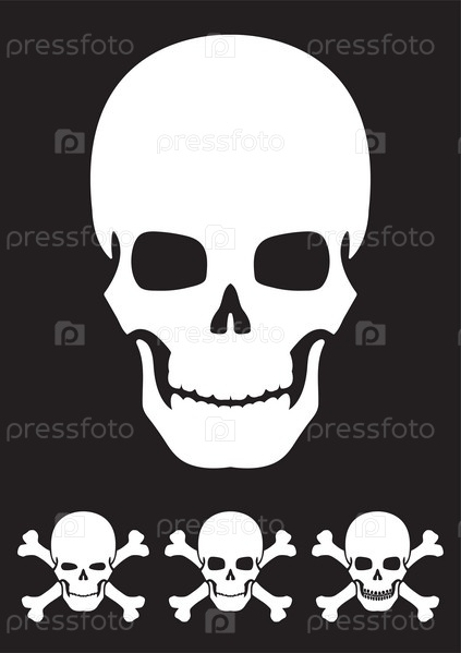 Черный силуэт черепа. Элемент дизайна. Векторная иллюстрация изолирована на белом фоне. Шаблон для книг, наклеек, плакатов, карт, одежды