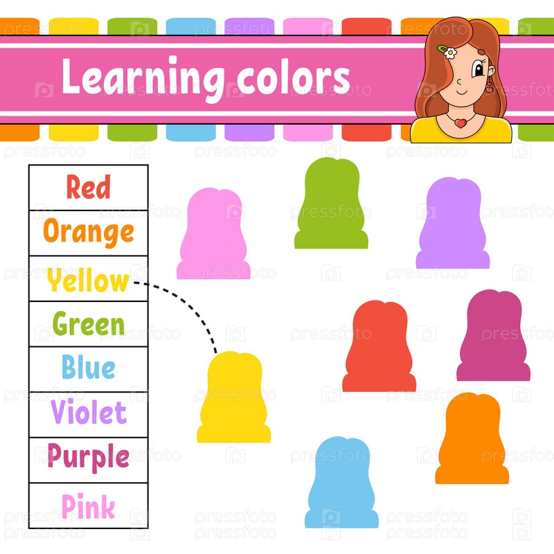 Изучаем цвета. Образовательный развивающий рабочий лист. Страница с заданиями с картинками. Игра для детей. Изолированная векторная иллюстрация. Забавный персонаж. Мультяшный стиль