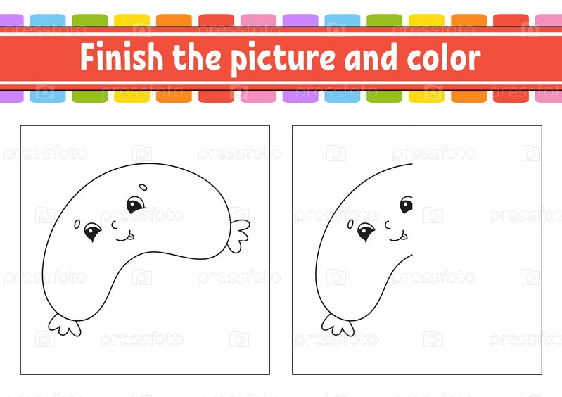 Закончите рисунок и раскрасьте. Персонаж мультфильма, изолированный на белом фоне. Для образования детей. Рабочий лист с заданиями