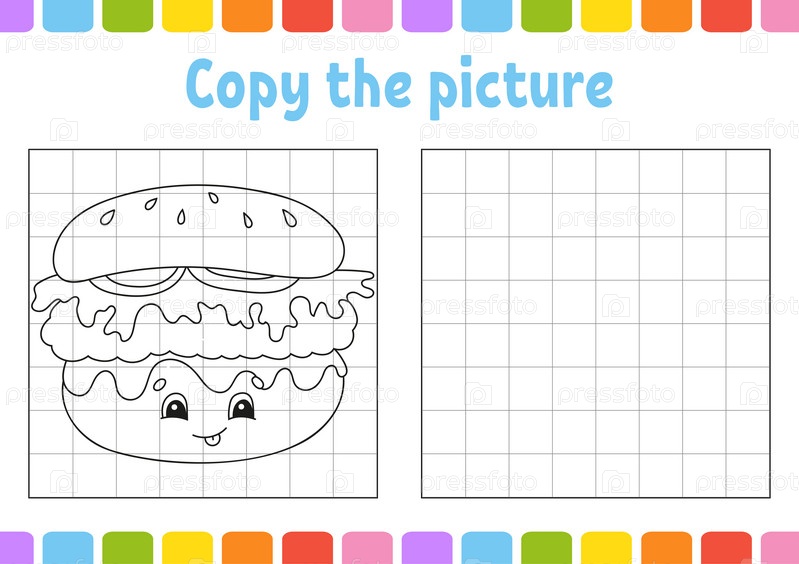 Скопируйте картинку. Страницы раскраски для детей. Развивающий рабочий лист для обучения. Игра для детей. Практика письма. Забавный персонаж. Милая мультяшная векторная иллюстрация