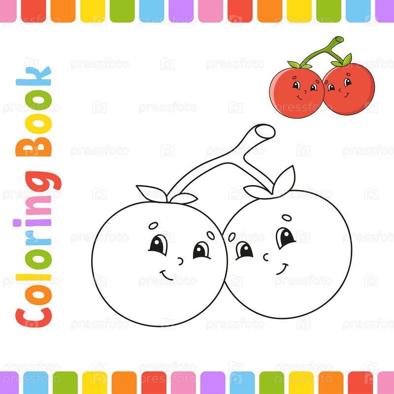 Раскраска для детей. Веселый персонаж. Векторная иллюстрация. Тема барбекю. Фэнтези-страница для детей. Черный контурный силуэт. Изолирован на белом фоне